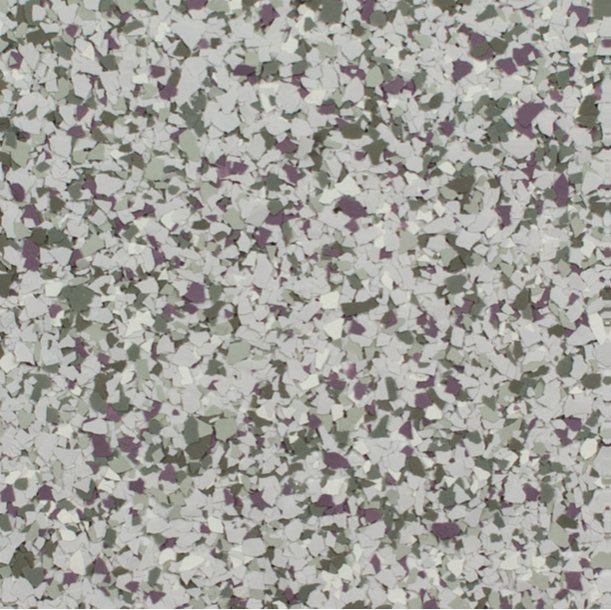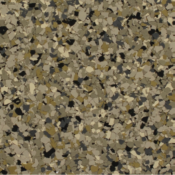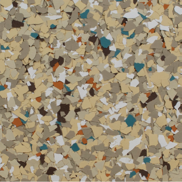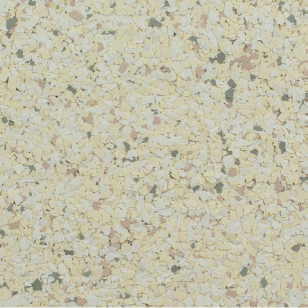 A multi-coat chip (flake) broadcast system designed to provide an attractive and durable, seamless flooring finish.